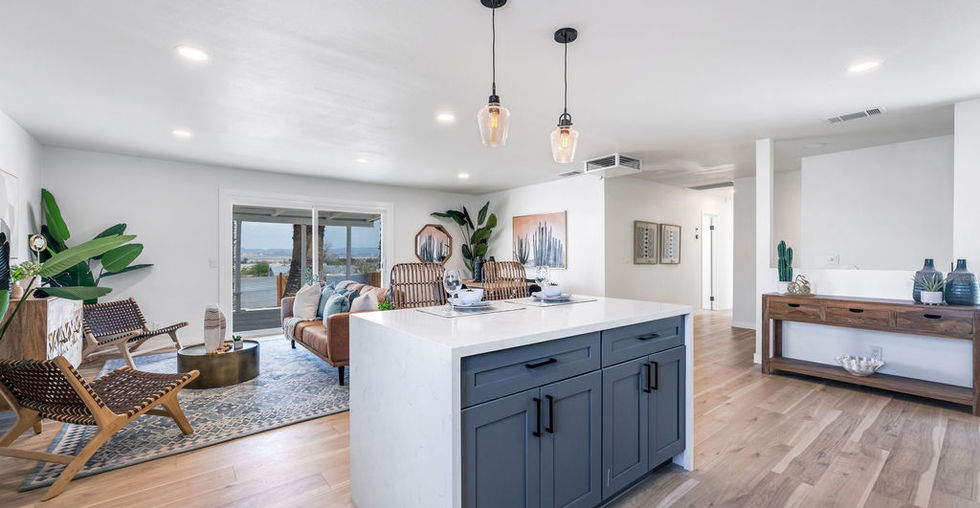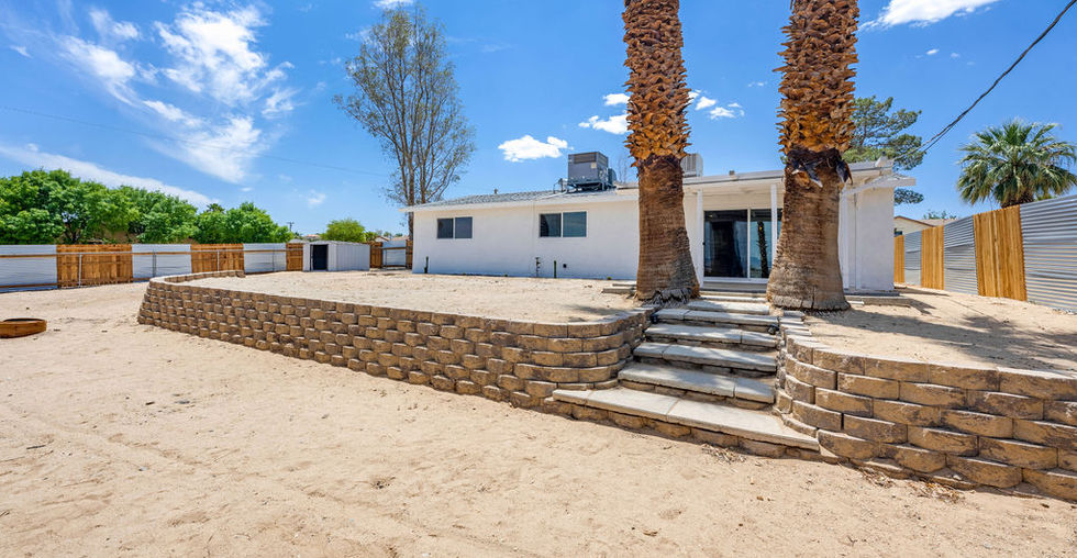 Whether you’re looking for a desert escape or the perfect family home, presenting the creme de la creme 29 has to offer. Welcome to 73904 Playa Vista Drive situated in the heart of Twentynine Palms a desert oasis. Remodeled from head-to-toe with quality finishes and fixtures. Featuring 3 bedrooms and 2 bathrooms on a comfortable 1,258 sq ft. Immerse yourself in a reimagined desert home that you genuinely deserve, a true turn-key. New laminate flooring, windows, expanded sliding door, fresh interior/exterior paint, recessed lighting, fully equipped open concept kitchen with quartz countertops, completely revived bathrooms with custom tile, galvanized steel & wood fence for extra seclusion and freshly landscaped with cactus. Central air conditioning & heating via Google Nest and cost-efficient swamp cooler for the blazing desert heat. Plethora of yard space, alongside newly custom-built paver wall on nearly half an acre lot with endless palm trees. Optimal backyard for stargazing on the hammock, s’mores on the fire-pit and unforgettable memories with loved ones. Close to downtown, Tortoise Rock Casino and only minutes from Joshua Tree National Park.